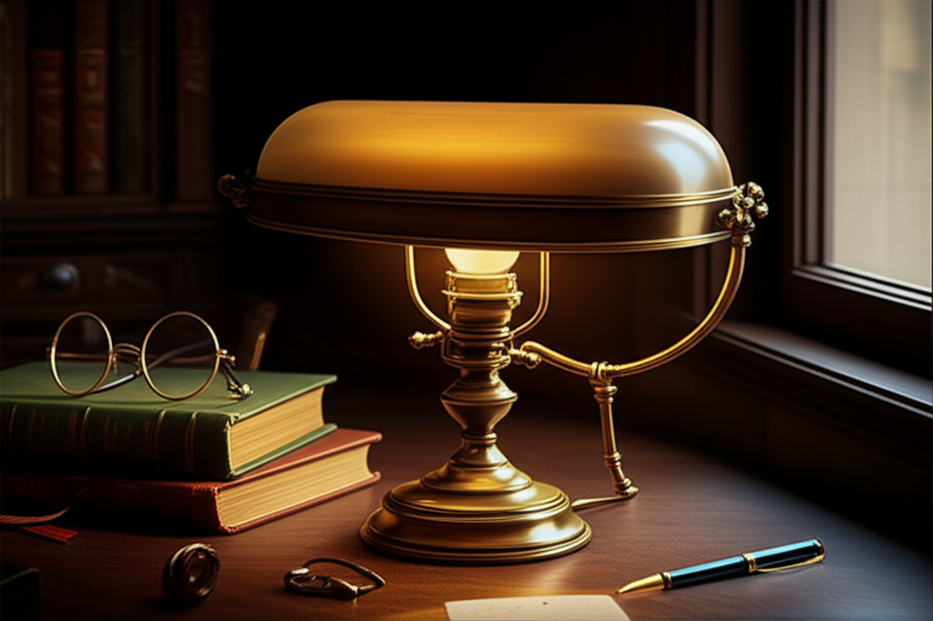 One of the most recognizable antique brass desk lamp styles is the banker’s lamp. Originating in the early 20th century, it was designed to provide glare-free illumination for counting money and reviewing documents. Its distinctive green glass shade and brass base became a symbol of serious study and financial work.