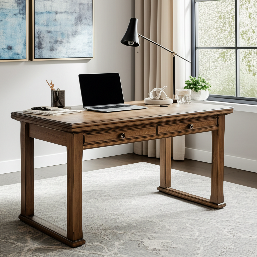 These desks can double as console tables or accent pieces when not in use for work. They often come in traditional or transitional styles, with finishes like cherry, oak, or painted hues. A classic writing desk might have cabriole legs and delicate drawer pulls.