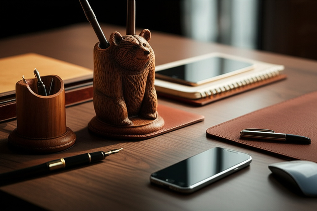 Consider the overall theme of your desk when choosing materials. A heavy, ceramic bear pen holder might add a sense of stability. A lighter, wooden organizer could feel more organic. The tactile sensation of the materials can also influence your perception of the accessory.