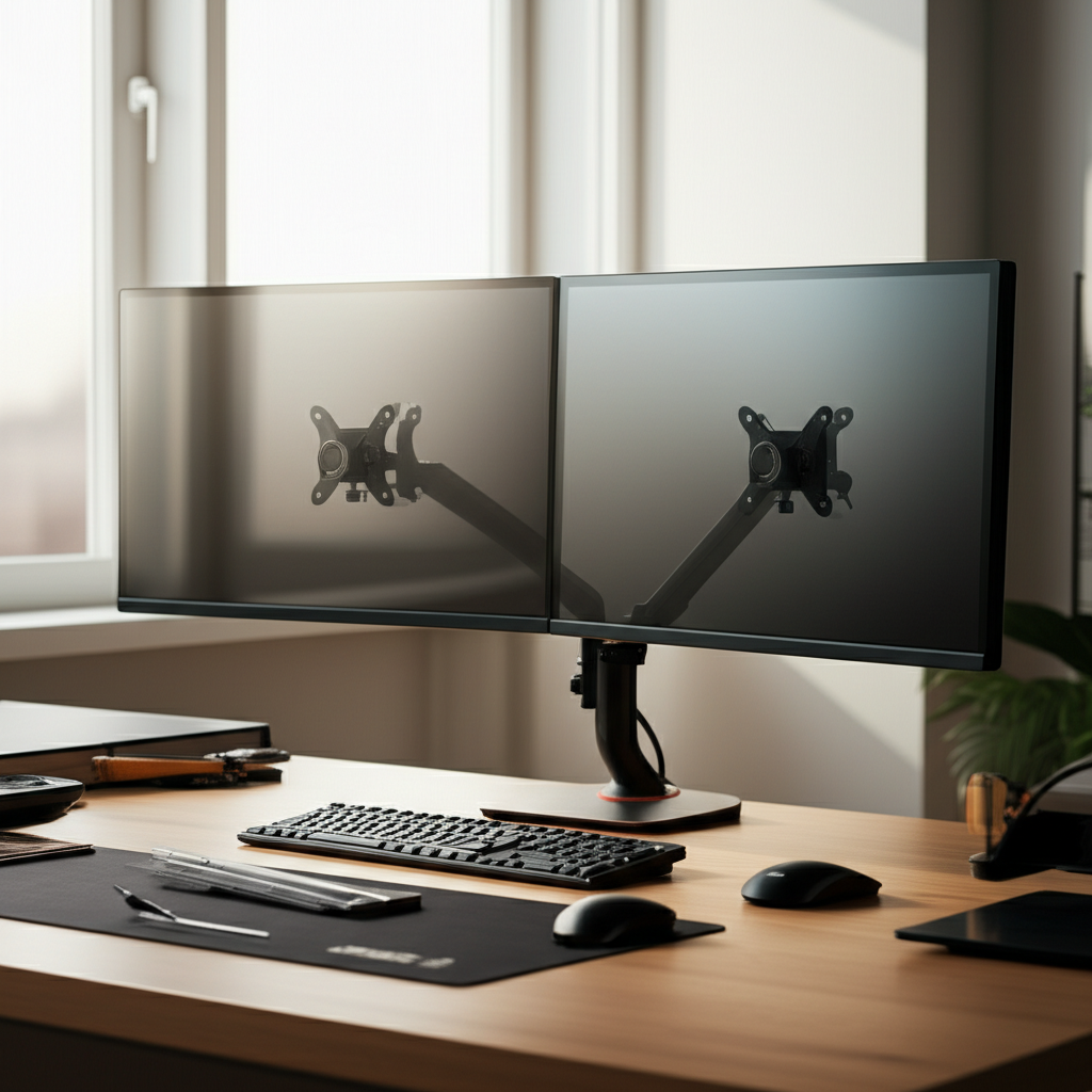 Whether you opt for a premium adjustable arm, a budget-friendly clamp, or a space-saving wall mount, the benefits are clear. An effortlessly set-up dual monitor stand enhances your daily computing experience significantly. Make the smart choice for your workspace today and enjoy a more comfortable and efficient setup.