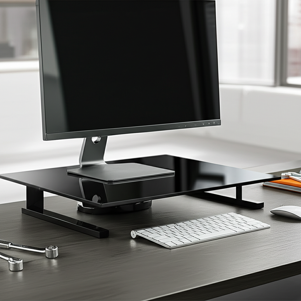 A black glass monitor stand isn’t just about looks. It’s a smart addition for anyone who spends time at their computer. It brings together form and function beautifully. This simple piece of equipment can significantly improve your daily work or study experience.