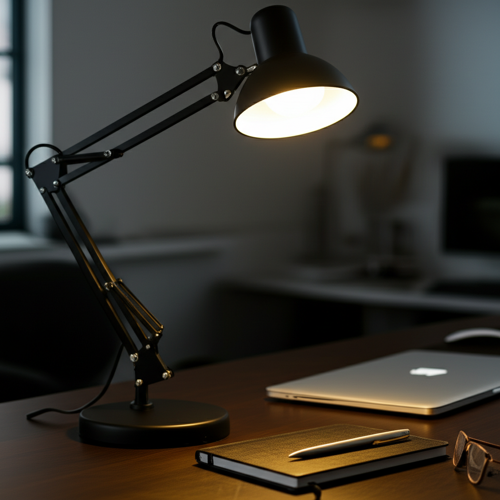 A lamp with a flexible arm and pivoting head is a must-have. It lets you direct light exactly where you need it. You can move the light source easily. This is helpful for reading books, writing notes, or working on detailed tasks. It ensures the light hits your page without glare.