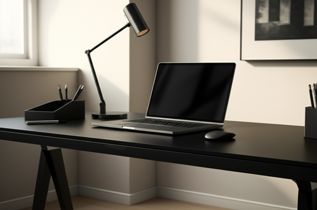 Once your black modern office desk is in place, it’s time to add accessories. These items enhance productivity, comfort, and the overall aesthetic. Think about what you use most often.