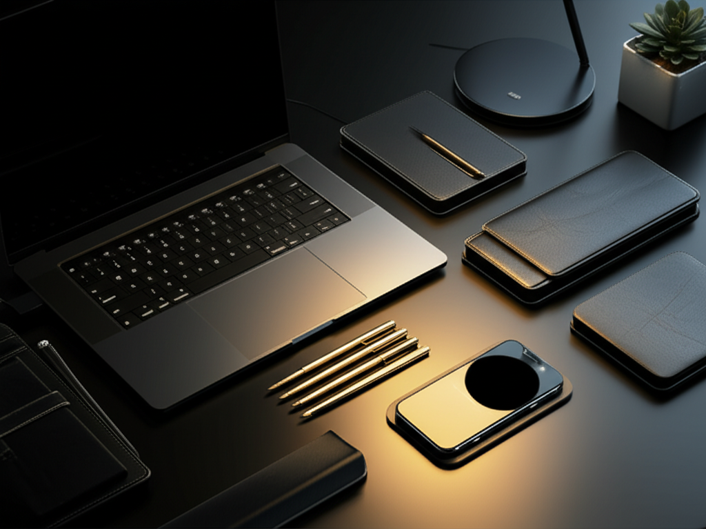 When styling your black office desk, start with the essentials that blend function and form. These are the items you’ll use daily, so they should look good and perform well. Think about items that serve a purpose but also add to the overall visual appeal of your desk.