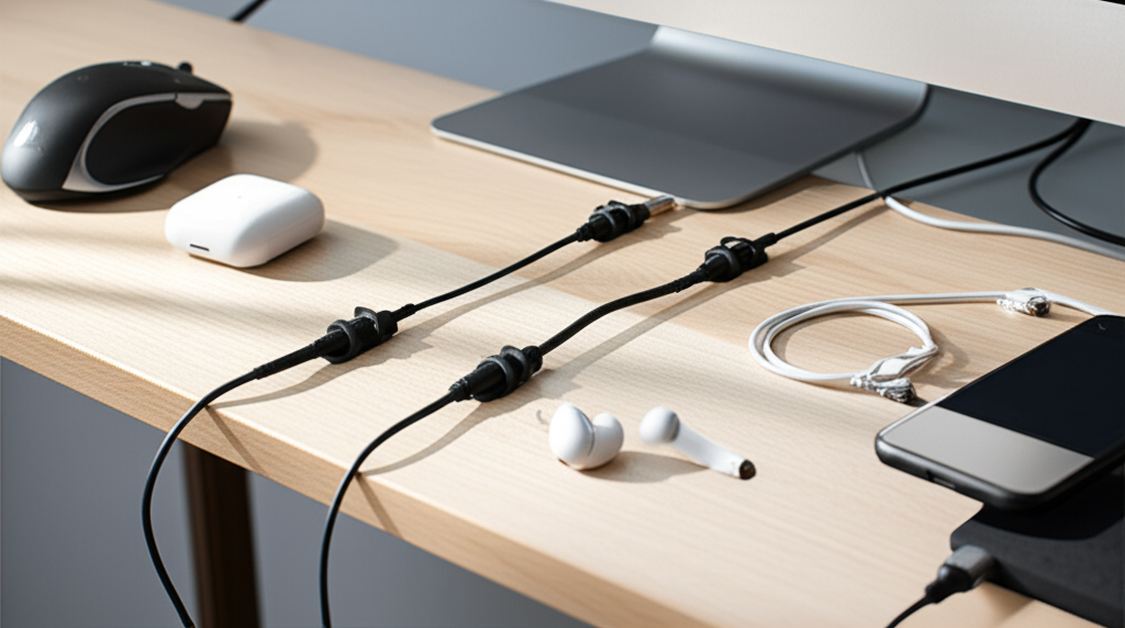 Magnetic Clips: These often come with a magnetic base that sticks to your desk, and magnetic clips that attach to your cables. They offer a sleek look and easy cable swapping.